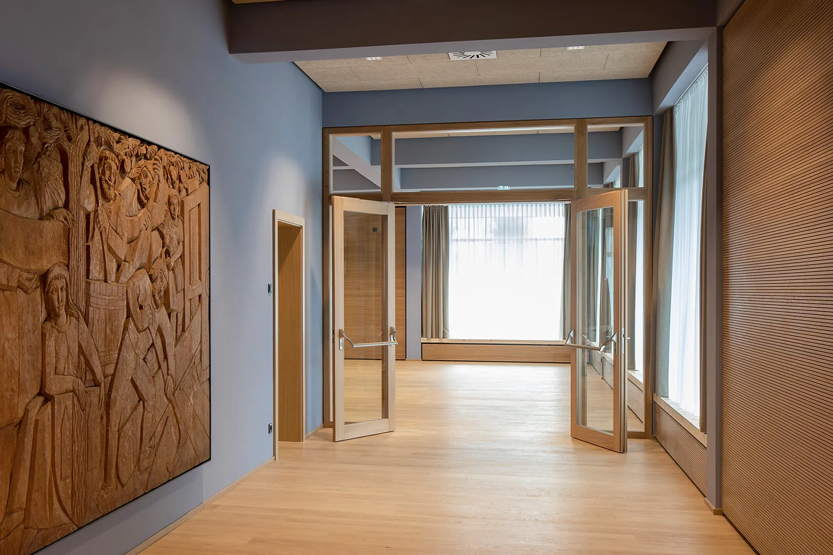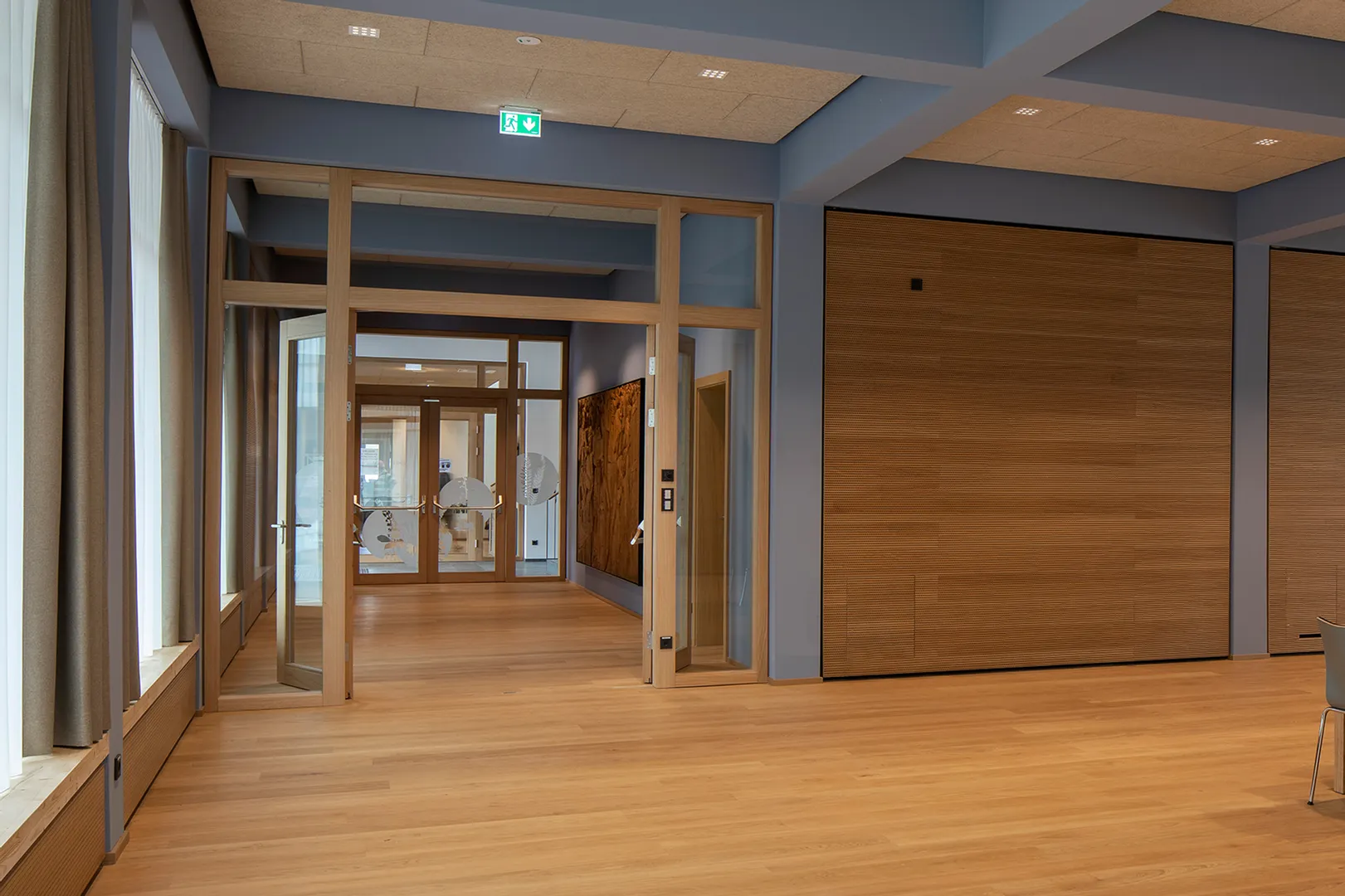 Feuerschutztüren aus Holz für das neue Gemeindezentrum