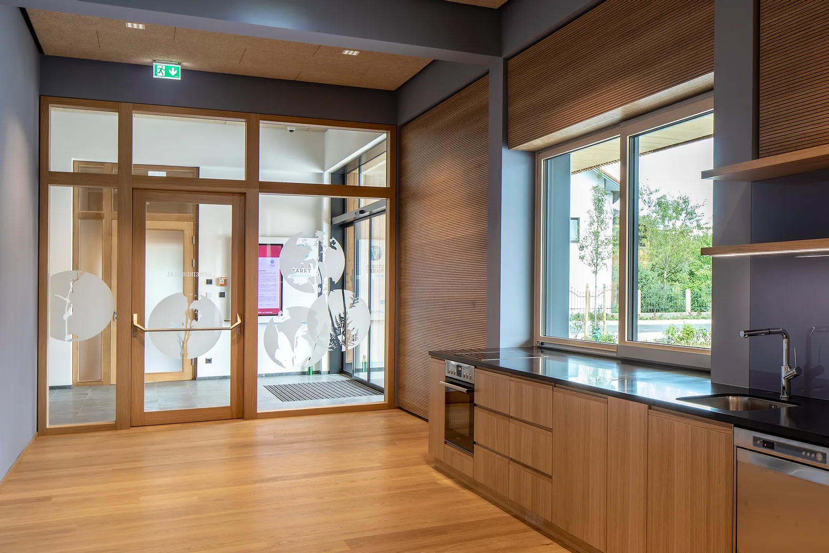 • Unsere Türen-Abteilung fertigte für das neue Gemeindezentrum in Vöcklamarkt alle EI30 Brandschutztüren aus massiver Eiche.