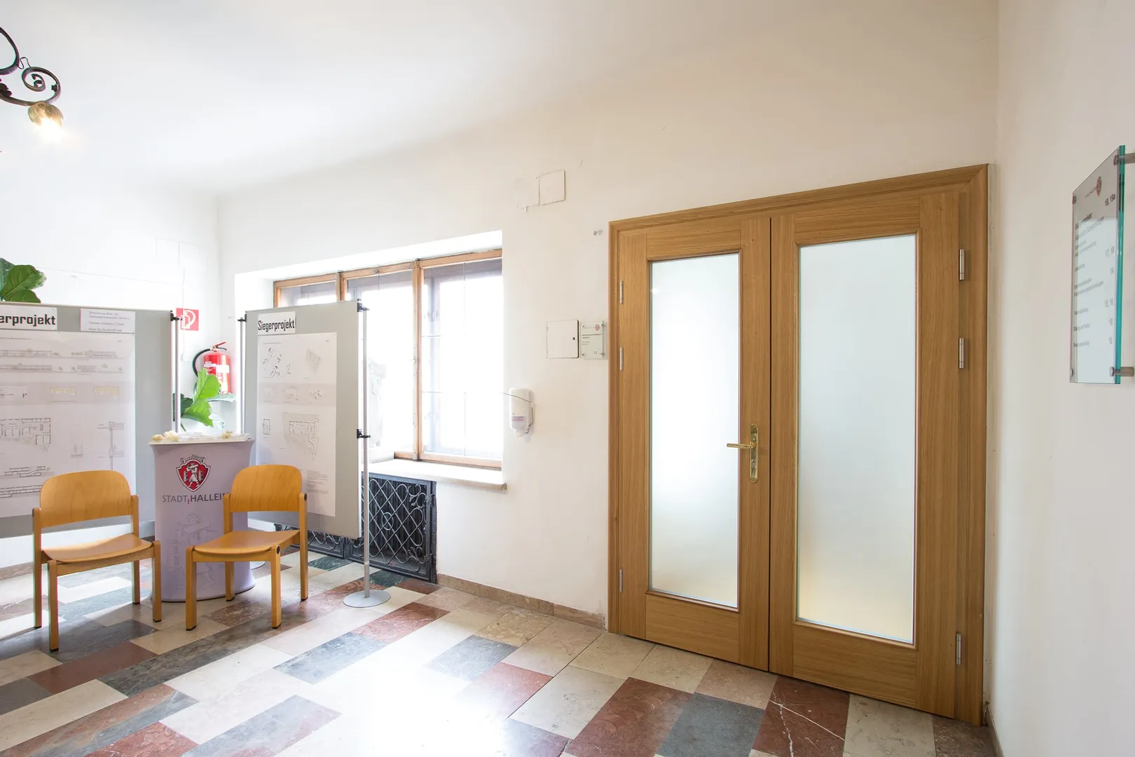 • Im Rathaus Hallein werden unsere 1- und 2-flügeligen Dachstein Feuerschutztüren als Büro-Zugangstüren und Eingangstüren genutzt, teilweise ausgeführt mit Notausgangsfunktion nach EN 179 und schallschutztechnisch bzw. brandschutztechnisch den Anforderungen gerecht ausgestattet (EI30-C sowie ca. Schallschutz Rw ca. 40dB)