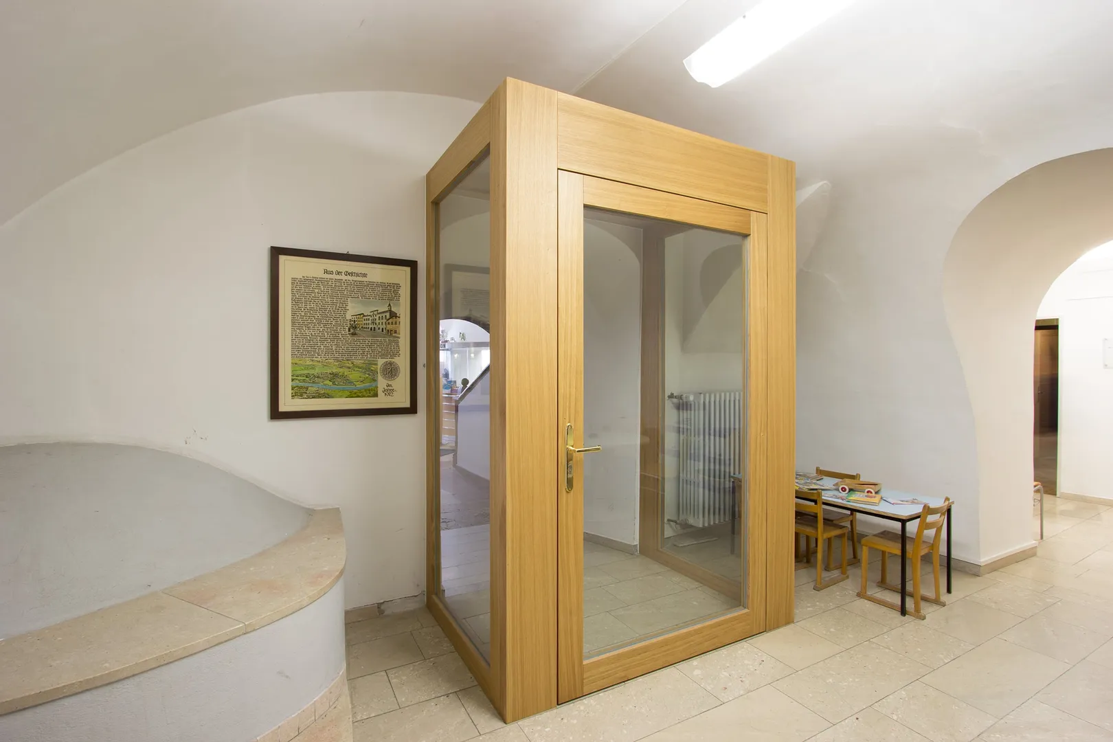 • Die Oberfläche ist in Eiche Natur gehalten, durch die vielen Glasflächen kann Licht in die Gänge fluten.